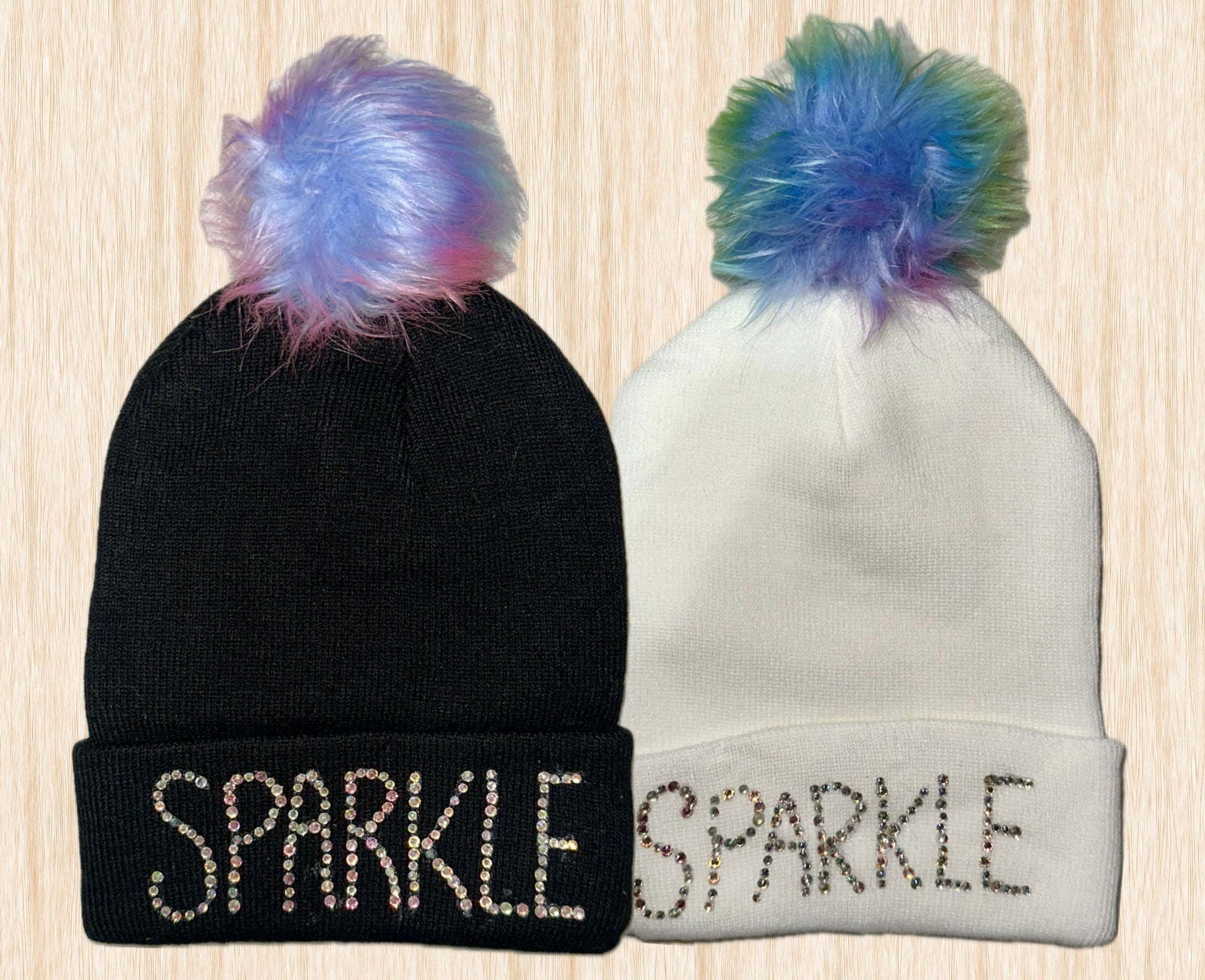 Stay cozy and chic with our Sparkle Pom Beanie! Available in classic black and white, each hat is topped with a dreamy, multi-colored puff ball and finished with rhinestone lettering that spells out SPARKLE—because that’s exactly what you were born to do. Perfect for chilly days, snow adventures, or just adding a little glam to your everyday look. Soft, warm, and totally Insta-worthy!
